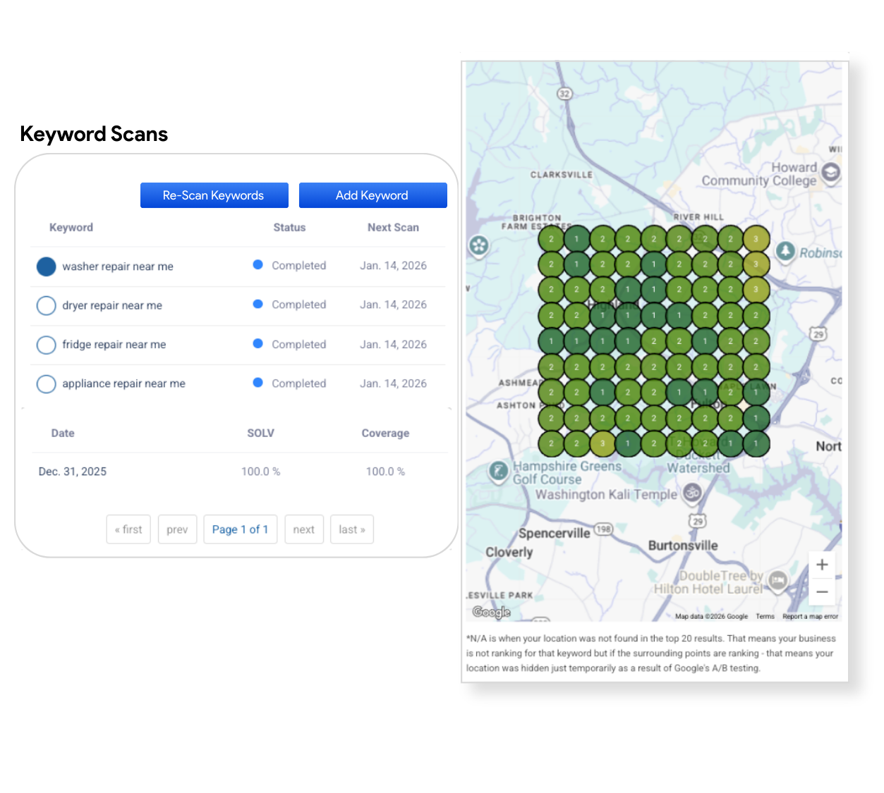 See exactly where you rank for each keyword in each neighborhood