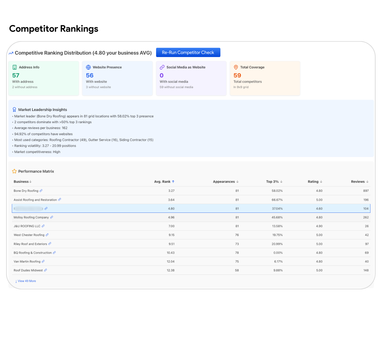 Track direct competitors in your city and service area