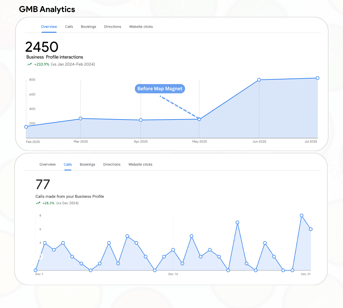 It’s not enough to hope customers find you — you need proof that they actually are. Our Local GMB Third party interactions drive real customers to your door step and you'll see in your Google analytics actual increases in views, search impressions, and customer actions tied to your Google Business Profile.
